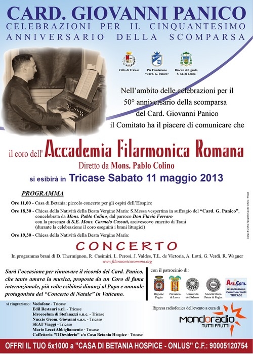 In occasione del cinquantesimo anniversario dalla mortede l Cardinale Giovanni Panico, il Comitato ha organizzato un concerto con il coro dell'Accademia filarmonica romana