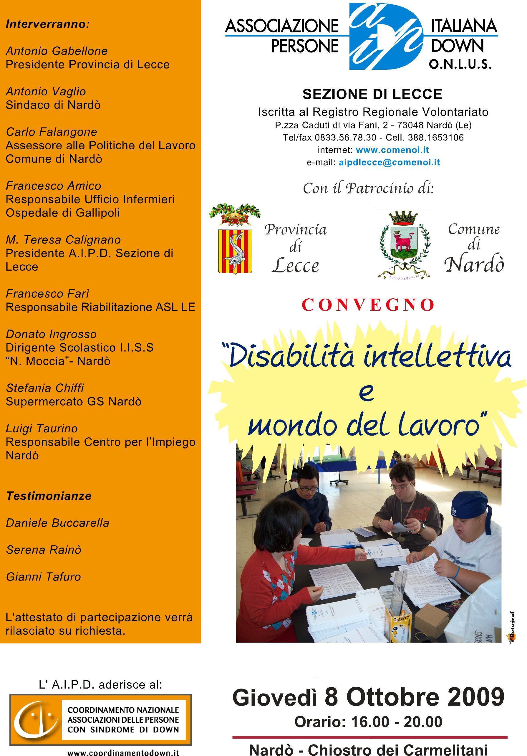 Per celebrare l'evento la sezione di Lecce dell“Associazione Italiana Persone Down organizza un Convegno dal titolo: "Disabilità intellettiva e mondo del lavoro" che si terrà a